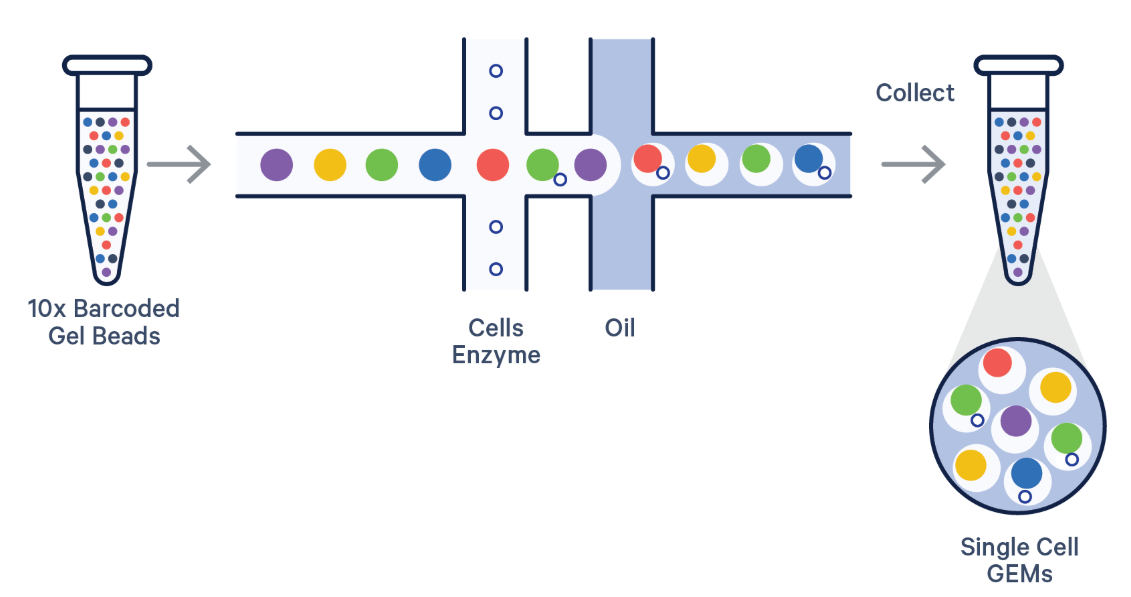 图 | 10x Genomics单细胞转录组原理图(来源:10x Genomics)