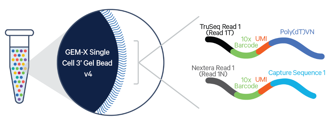 细胞分离与捕获:通过微流控芯片将单个细胞与带有独特条形码(Barcode)的凝胶微珠(Gel Bead)共同封装在油滴中,实现单细胞分离