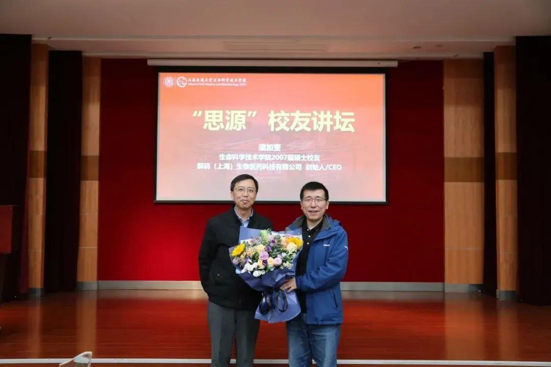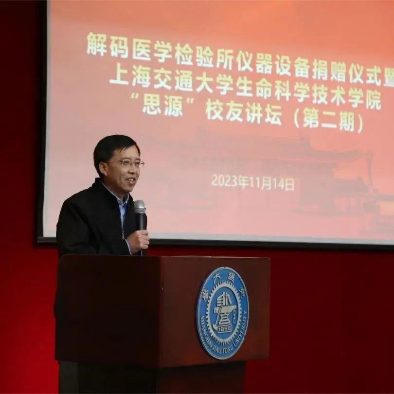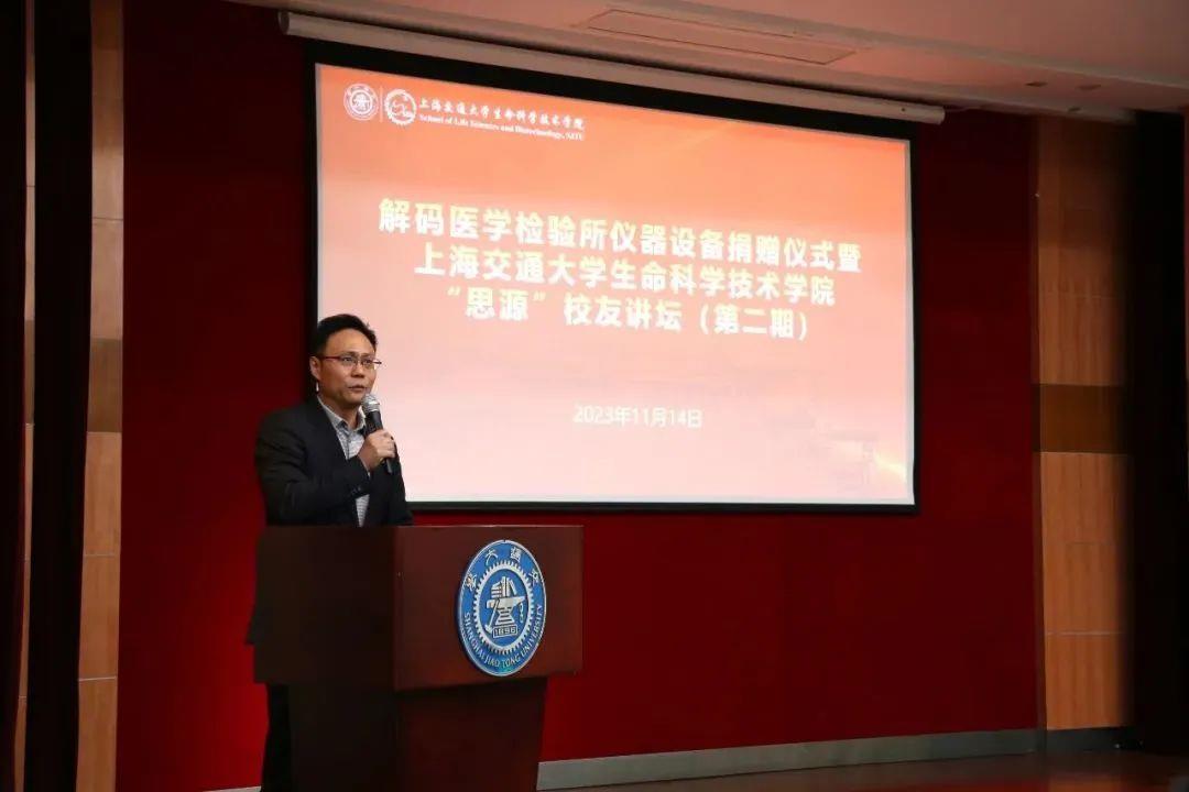 解码(上海)生物医药科技有限公司创始人兼CEO潘加奎受邀参加 【解码医学检验所仪器设备捐赠仪式暨上海交通大学生命科学技术学院第二期“思源”校友讲坛】。