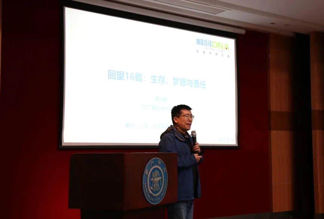 潘加奎是上海交通大学生命科学技术学院2007届硕士校友。离校16年后,潘加奎校友回到母校,以“回望16载:生存,梦想与责任”为题,为现场师生分享自己的心路历程。